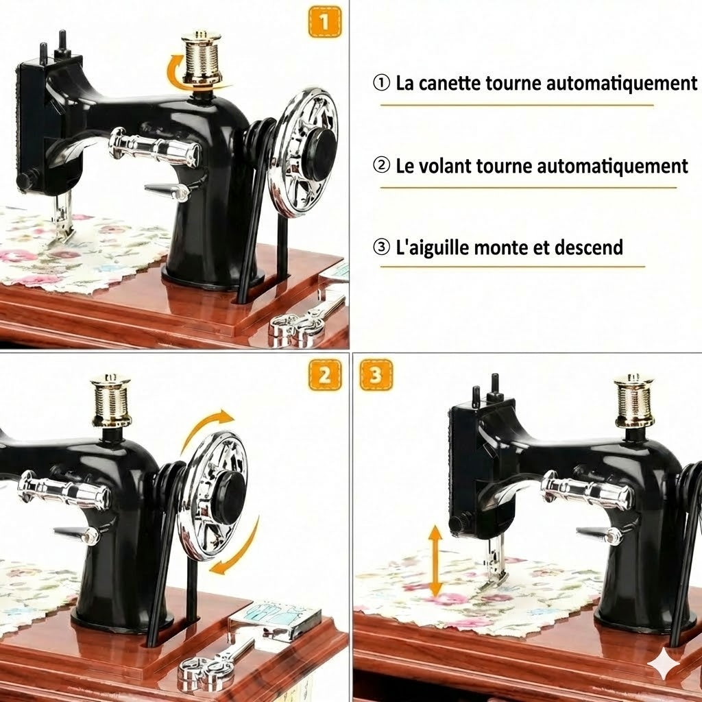 Boîte à musique mini machine à coudre en bois