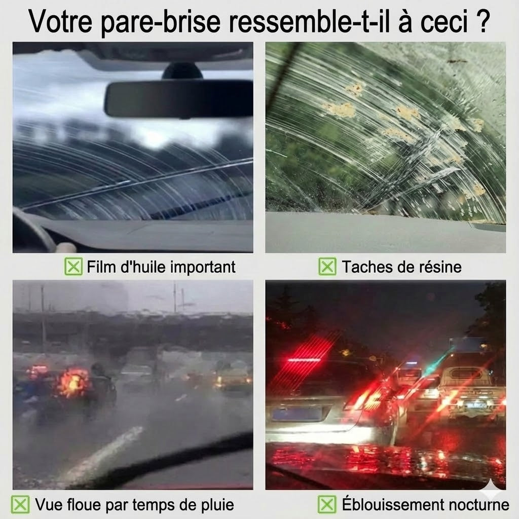 Ne prenez plus jamais le risque de conduire avec un pare-brise flou qui bloque votre vue, surtout la nuit ou sous la pluie battante. Cette brosse innovante attaque le problème à la source en assurant une finition impeccable et une transparence absolue. Sa formule puissante et améliorée dissout instantanément les films gras et routiers que les essuie-glaces ordinaires ne peuvent pas éliminer. Reprenez la route avec une confiance totale et un pare-brise comme neuf, garantissant votre sécurité et celle de vos passagers.