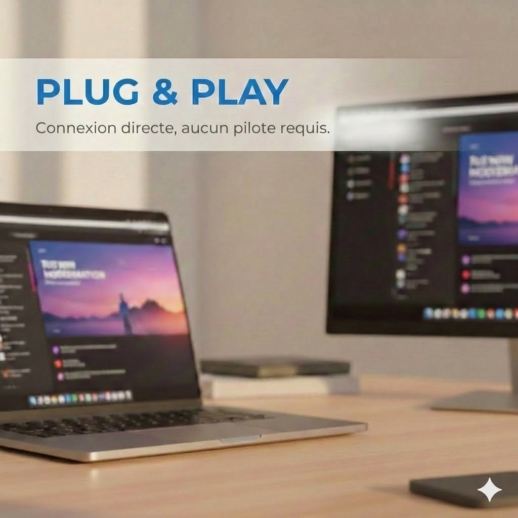 Arrêtez de perdre du temps avec des installations complexes ou à chercher le bon câble pour votre présentation. Avec cet adaptateur plug-and-play, vous pouvez dupliquer votre écran immédiatement sans avoir besoin de télécharger de pilotes ou de logiciels supplémentaires. Vous vous connectez en quelques secondes, ce qui le rend idéal pour des réunions spontanées ou une soirée de divertissement à domicile sans souci, confortablement installé dans votre canapé.