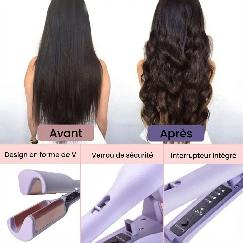 Oubliez les rendez-vous coûteux chez le coiffeur. Avec ce fer à onduler en forme de V, vous transformez instantanément votre chevelure en une cascade de "French Waves" glamour. En quelques minutes seulement, obtenez un volume spectaculaire et une texture riche, le tout sans frisottis ni mèches rebelles. C'est la solution rêvée pour celles qui exigent une coiffure impeccable et un résultat professionnel à la maison, sans passer des heures devant le miroir.