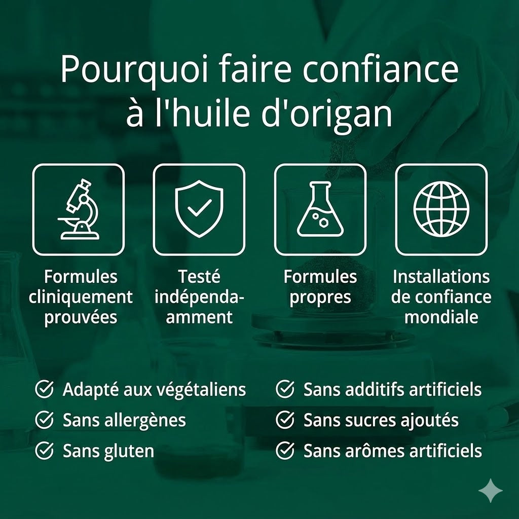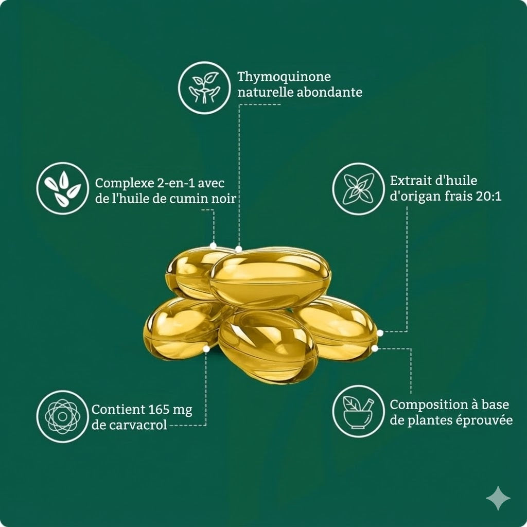 Vous sentez-vous souvent épuisé, ballonné ou dans le brouillard mentalement ? La cause est souvent plus profonde que vous ne le pensez. Cette huile d'origan ultra-puissante, concentrée à 85% de carvacrol, agit comme un briseur de barrières : elle détruit les structures de biofilm qui protègent les bactéries nocives et nettoie vos intestins en profondeur. Rétablissez l'équilibre de votre microbiote et sentez-vous immédiatement plus léger, l'esprit clair et revitalisé. C'est le "reset" complet dont votre corps a besoin.