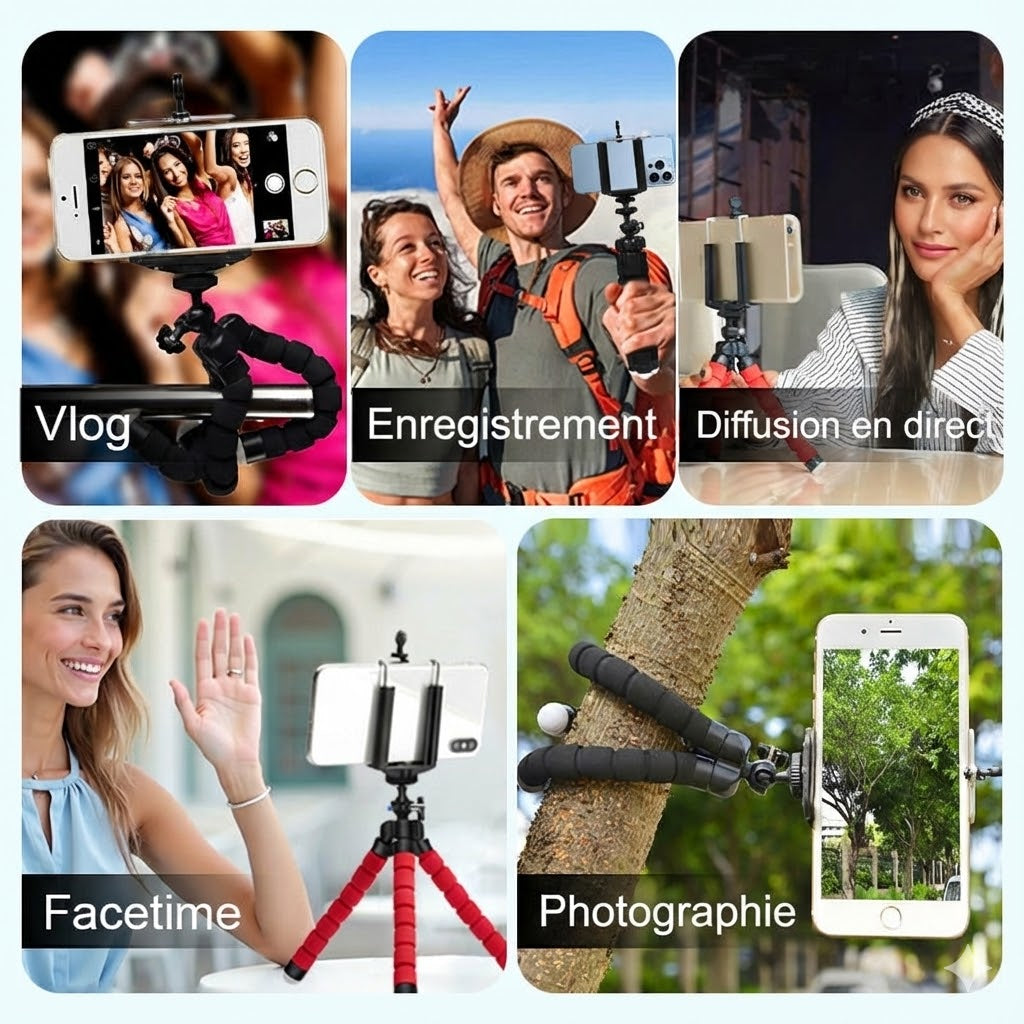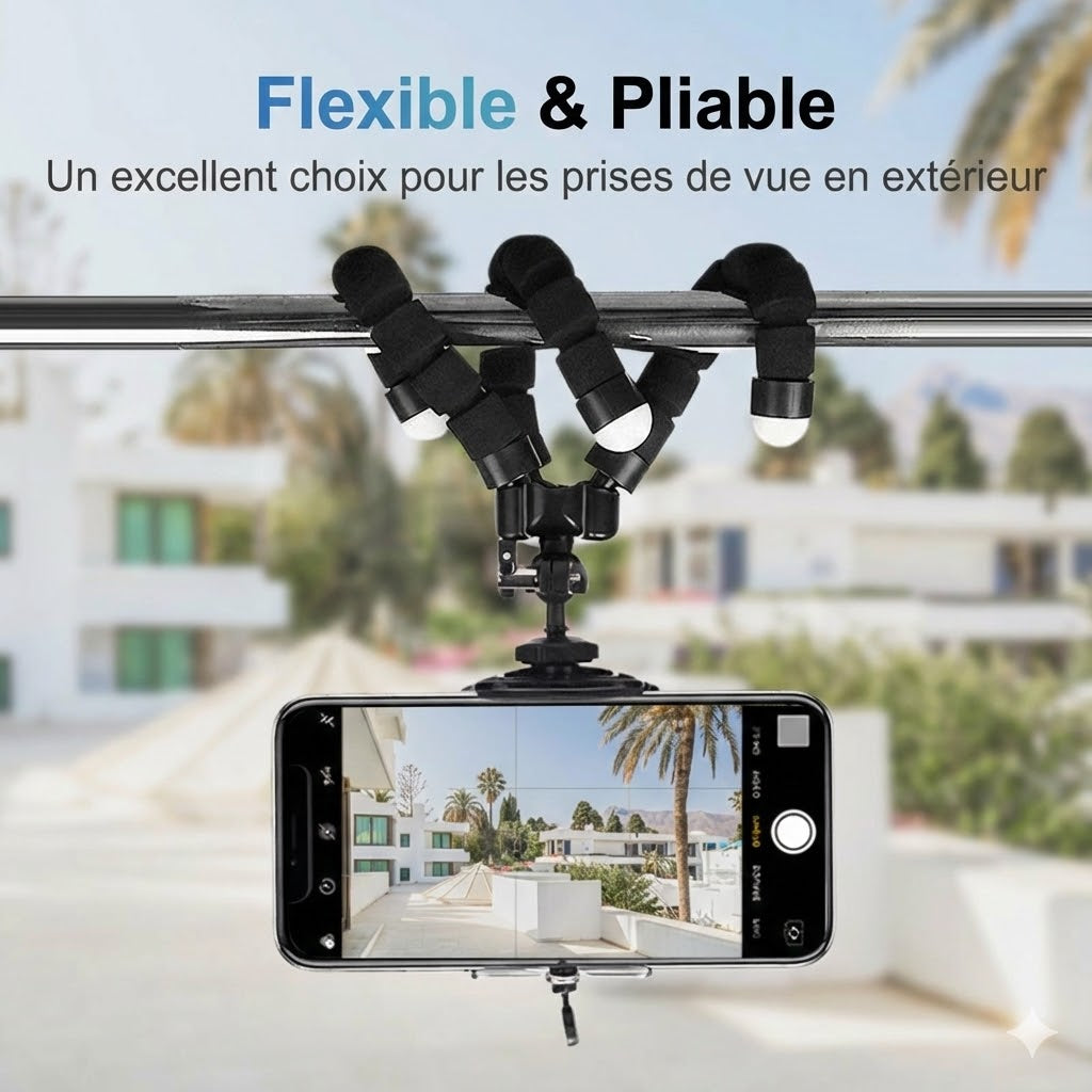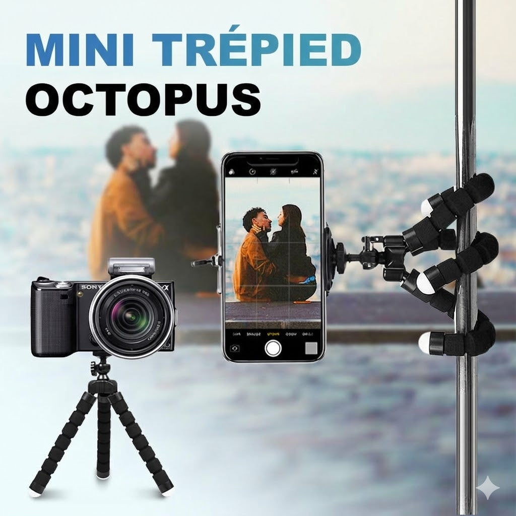 Marre des photos floues et des installations précaires ? Avec le mini trépied Octopus, profitez d'une flexibilité extrême que les modèles classiques ne peuvent offrir. Que vous l'accrochiez à une branche, l'enrouliez autour d'une barrière ou le posiez sur un rocher instable, vous obtenez un support stable instantané pour des résultats professionnels. Ce trépied multifonction règle immédiatement le problème des angles limités, vous permettant de créer le cliché parfait partout et à tout moment.